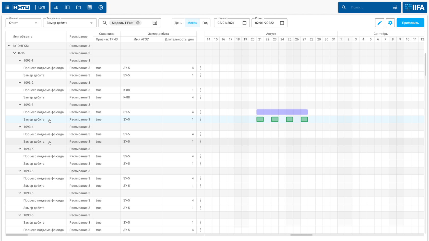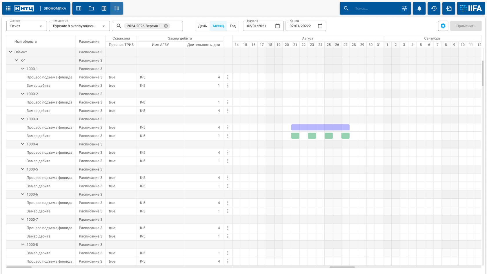 Для просмотра пользователем и информации по инвестиционному проекту на диаграмме Ганта, пользователь должен выбрать функцию «Отобразить на Ганте» в реестре ИП, после чего в новой вкладке откроется отображение выбранного ИП на диаграмме Ганта.