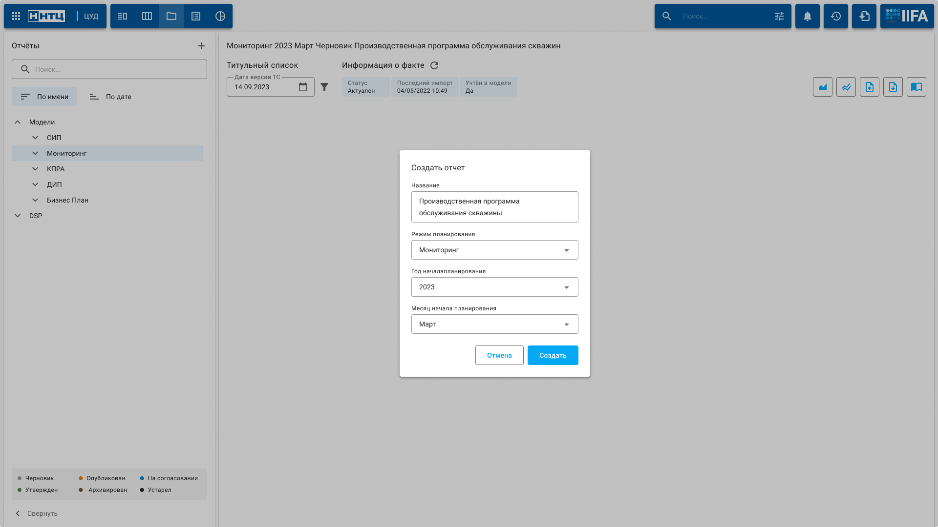 В системе предусмотрена возможность выбора версии модели Мониторинга. Для дальнейшей работы по Мониторингу, пользователь выбирает версию модели Мониторинга, после чего на экране отображается окно сравнения планов инвестиционных проектов. В системе предусмотрена возможность выбора плана, с которым нужно сравнить утвержденную версию ИП.
